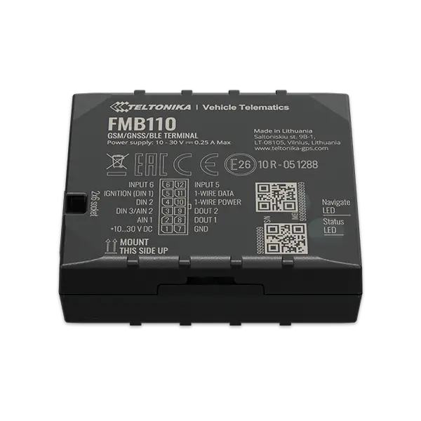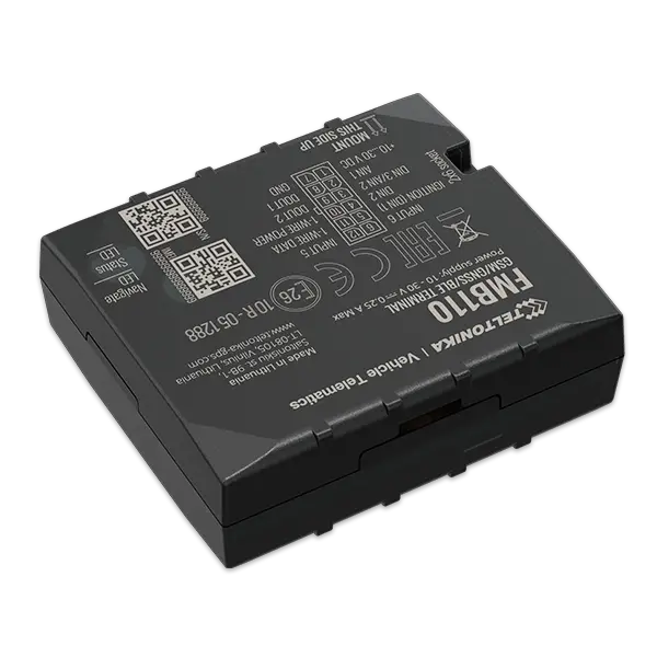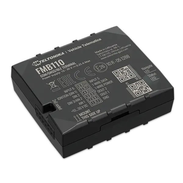 FMB110 small and professional tracker with internal high gain GSM and GNSS antennas, which is able to collect device coordinates and other useful data and transfer them via GSM network to server. This device is perfectly suitable for applications where location acquirement of remote objects is needed: fleet management, car rental companies, taxi companies, public transport, logistics companies, personal cars and so on. FMB110 can perform tasks on remote objects, such as monitoring engine status, controlling truck’s door etc.