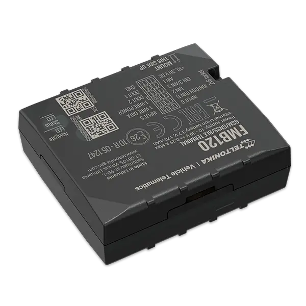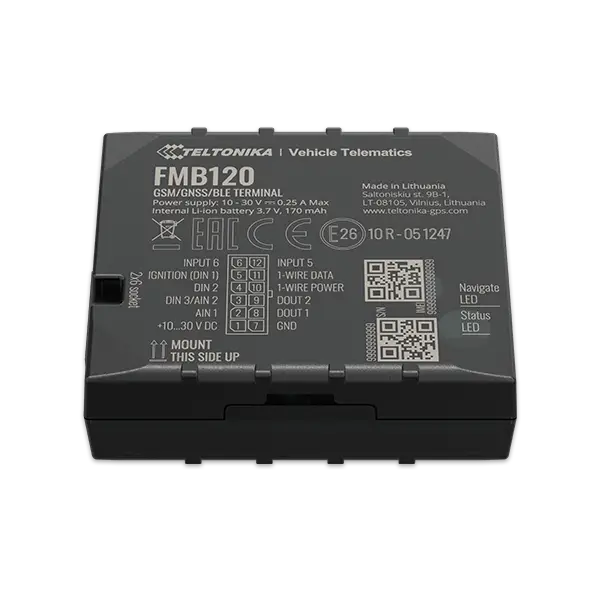 FMB120 small and professional tracker with internal high gain GSM and GNSS antennas, which is able to collect device coordinates and other useful data and transfer them via GSM network to server. This device is perfectly suitable for applications where location acquirement of remote objects is needed: fleet management, car rental companies, taxi companies, public transport, logistics companies, personal cars and so on. FMB120 can perform tasks on remote objects, such as monitoring engine status, controlling truck’s door etc.