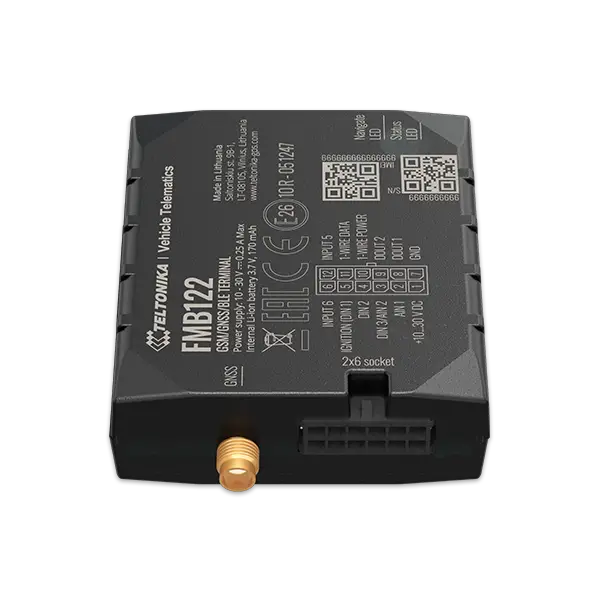 FMB122 small and professional tracker with internal high gain GSM and external GNSS antennas, which is able to collect device coordinates and other useful data and transfer them via GSM network to server. This device is perfectly suitable for applications where location acquirement of remote objects is needed: fleet management, car rental companies, taxi companies, public transport, logistics companies, personal cars and so on. FMB122 can perform tasks on remote objects, such as monitoring engine status, controlling truck’s door etc.