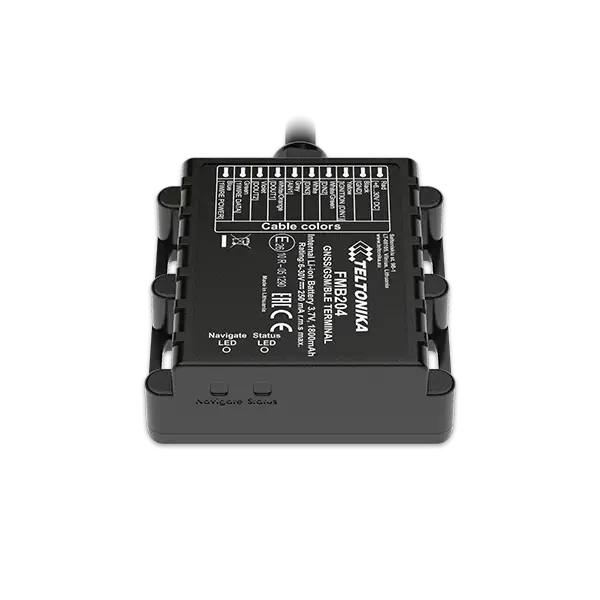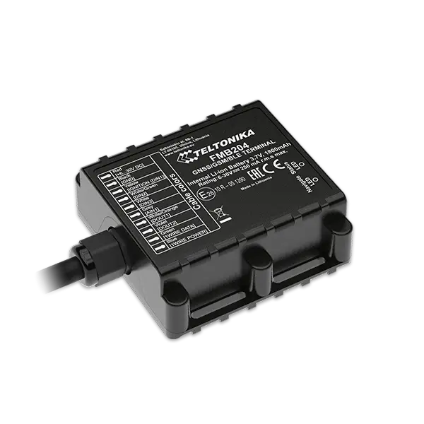 Teltonika FMB204 is a SPECIAL waterproof (IP67) tracker with Bluetooth connectivity, internal high gain GNSS and GSM antennas and integrated high capacity backup battery. Device is designed to work longer without power supply. FMB204 with LiPo battery can work up to 6 days in power saving mode. FMB204 is perfectly suitable for agriculture, delivery, refrigerated transport, trailers tracking, security & emergency services and even more. 6-30V power supply makes FMB204 suitable for motorbikes and water transport.