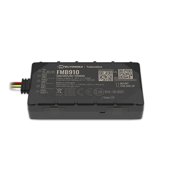 Teltonika FMB910 is a low-cost version of the FMB920 tracker. The main differences are the overall size of the device, different GNSS antenna design, and some components being bigger in size, thus the change in dimensions. The device has all internal antennas, that ensure easy installation with no need to wire the antennas. Like other Teltonika trackers, FMB910 is assembled by robots, which eliminates human error and ensures high quality of the device. The tracker has a digital input to monitor ignition or to connect an alarm button. Vehicle remote immobilizing may be achieved using a digital output. Bluetooth connectivity expands peripherals' connectivity even more. Teltonika FMB910 can be used in a variety of applications like basic track and trace or recovery of stolen vehicles. It can be installed in light vehicles, motorbikes, and even trucks.