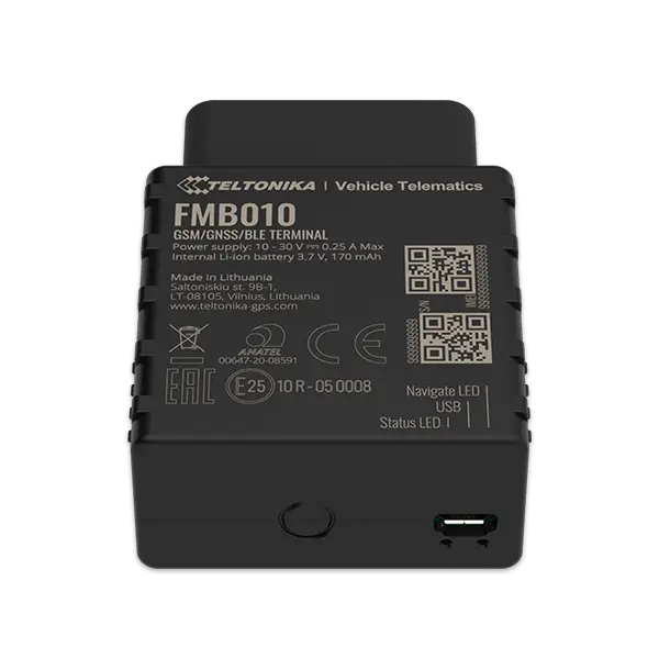FMB010 is easy OBDII Plug and Play tracker with GNSS, GSM and Bluetooth connectivity. FMB010 is perfectly suitable for light vehicle tracking in applications like courier delivery service, car rental & leasing, insurance telematics and many other where simple integration is a must. This device supports temperature/humidity sensors, hands-free, firmware and configuration update via Bluetooth.