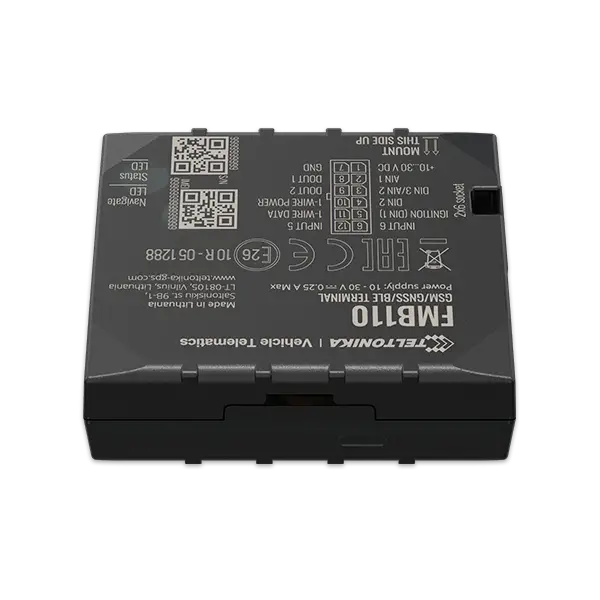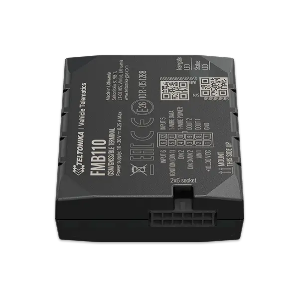 FMB110 small and professional tracker with internal high gain GSM and GNSS antennas, which is able to collect device coordinates and other useful data and transfer them via GSM network to server. This device is perfectly suitable for applications where location acquirement of remote objects is needed: fleet management, car rental companies, taxi companies, public transport, logistics companies, personal cars and so on. FMB110 can perform tasks on remote objects, such as monitoring engine status, controlling truck’s door etc.