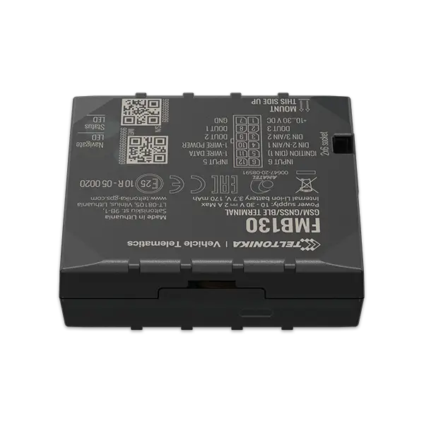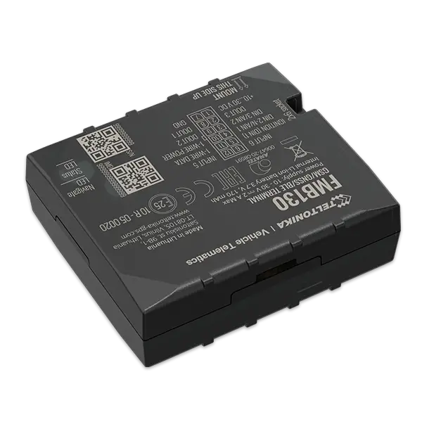 FMB130 is ADVANCED tracker with internal GNSS, GSM antennas, configurable digital/analogue inputs/negative input/impulse inputs, three DOUT outputs, Bluetooth connectivity and backup battery.