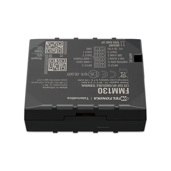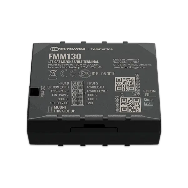 FMM130 is small and professional real-time tracking terminal with GNSS and LTE CAT-M1/NB-IoT/GSM connectivity and backup battery. Device equipped with GNSS/Bluetooth and LTE CAT-M1/NB-IoT modules with fallback to 2G network, internal GNSS and LTE antennas, configurable digital, analogue inputs and digital outputs, negative input, impulse inputs. It is perfectly suitable for applications where location acquirement of remote objects is needed: fleet management, car rental companies, taxi companies, public transport, logistics companies, personal cars and so on.
