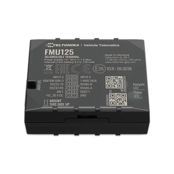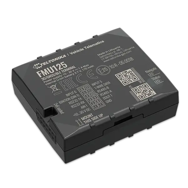 FMU125 is small and professional real-time tracking terminal with GNSS and 3G/GSM connectivity and backup battery. Device equipped with GNSS/Bluetooth and 3G modules, internal GNSS, 3G antennas.